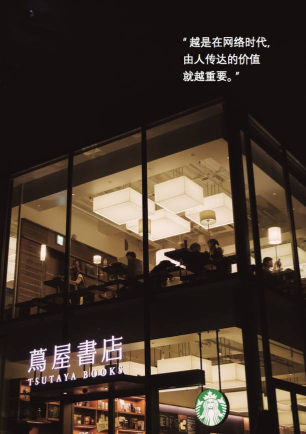 这个企画就是「用书店创造的街道」,从结果来看,占地 4000 坪的 T-SITE 确实形成了一个以蔦屋书店为核心的街道。在这里,增田用极端品牌化的手段,打造了一个有别于「TSUTAYA」连锁店的个店模式,用30个各行各业的精英导购的“编辑化”的选择,实际上营造的是一个互联网世界无法复制的「人性化乐园」。每日访问这里的顾客达到 1 万人以上,节假日甚至达到 2 万以上,这就是茑屋书店以「人」的逻辑对抗互联网的「机器」,在主流战场之外,占据制高点的证明。