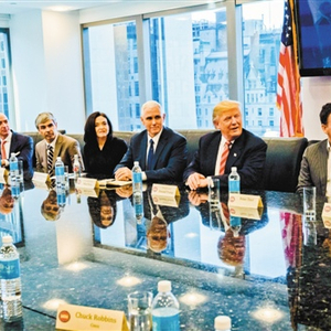 这场峰会在位于纽约的特朗普大厦举行,持续了90分钟,属于半公开半私下会谈。与会人士的身份与身价同样耀眼。据华尔街日报统计,与会公司市值超过2万亿美元,而福布斯给出的参会高管总财富合计达1340亿美元。
