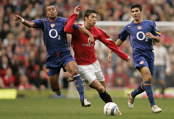图片来源:Sky Sports/ The Telegraph在2003年同朴茨茅斯队的英超联赛中,C罗打入了他在曼联队的处子球。