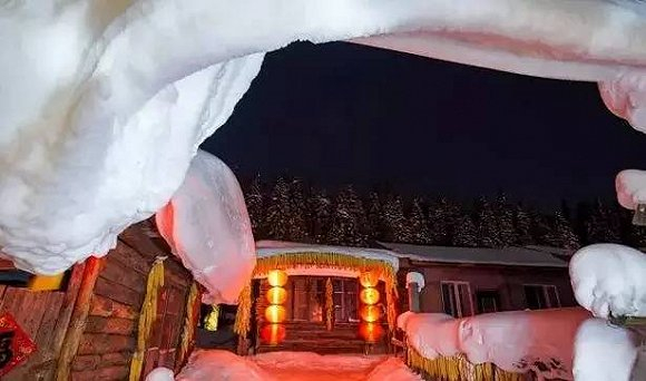 这里是双峰林场,是中国雪乡,一排排木质小屋相连着,松软的积雪垒得高高的,村民们会在门口挂上大红灯笼,暖的灯,白的雪,静谧得仿佛可以听见落雪,像是误入仙境。