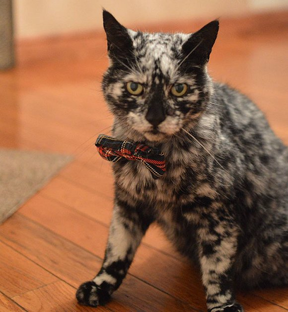 小猫七岁大的时候,可能是由于得了白斑病——一种罕见的皮肤病,身上的毛开始变白
