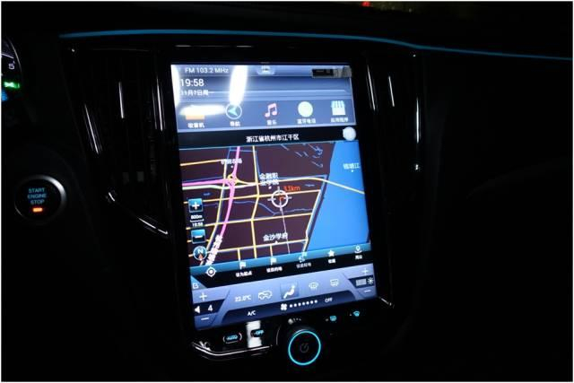 接下来谈内饰的情况。蓝色的车内氛围灯倒是蛮好看的,仪表台上沿、前后车门的上沿都有装饰,似乎只有一种颜色可选(显然笔者是想多了)。但是首先要批评的是多媒体系统,不少功能令人费解。