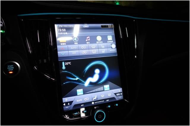 空调界面,屏幕之外保留了自动模式、空调开关以及前后除霜除雾功能的触摸按键,其他都是在多媒体系统的触摸大屏幕中操作。问题来了,上图所显示的这个界面底部的那一块显示空调相关信息,只是一个显示,要调节设定,比如内外循环,必须到上面的虚拟按键区域去调节,而不能直接点击底部这个区域的图标。