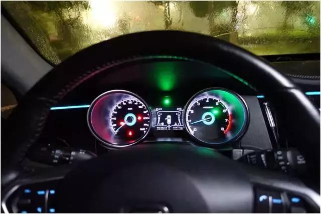 仪表组也有些问题。一个是油量表和水温表的条状显示,分别分为八格,这个指示是按格数均分的,不是按一格的面积或者长度分的,这就导致一个问题,油量少了两格,看起来和少了一半一样。另外,需要强调的是,仪表组中的电子时钟,在多媒体系统关闭的情况下,仪表组中的时间显示是不会变的,只有打开多媒体系统并启动导航功能之后,时钟才会正常。另外,仪表组中的位置灯开启指示灯在夜晚尤其刺眼。