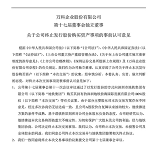 万科:终止与深铁集团重大资产重组