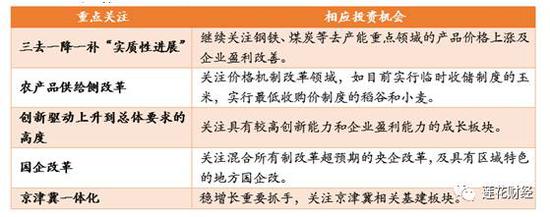 从各家券商的研报来看,都通过今年与去年经济工作会议的逐条逐句比较,认为2017年政策面的变化将会很大,但“稳中求进”的主基调反而更加提升。此外,供给侧改革的深化,财政、货币政策组合拳变动,推进混合所有制改革和防控金融风险,以及政府对房地产市场表态等,都是券商重点关注的问题。