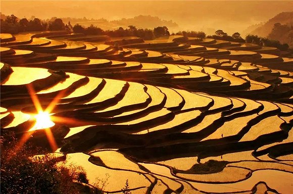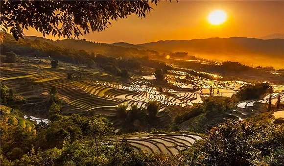 早上拍摄梯田的最佳地点是多依树景区,晨雾弥散田间,画面既柔和又梦幻;而到了傍晚,老虎嘴景区就成了拍日落的必到之处,金色的斜阳将把梯田丰富的层次和优美的曲线映衬得更加壮美,让你轻轻松松就能拍出专业的风光佳作。