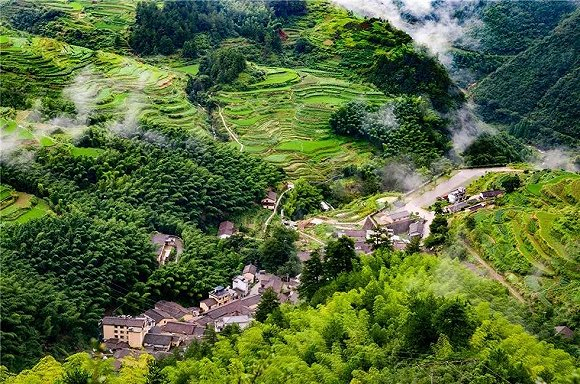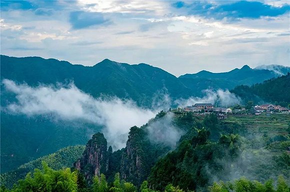 村落里,一幢幢明清时期的古民居依山而建,阳光洒遍屋顶,村民们辛勤劳作,却依然笑容满面。远远望去是深浅不一的远山,和瞬息万变的云海。
