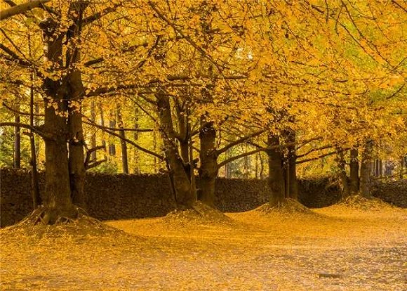 这是个不大的小镇,纯朴、恬静而安详,家家户户都种满银杏,千百年来,村子里的居民就生活在这金黄色的的秘境里悠然自得......