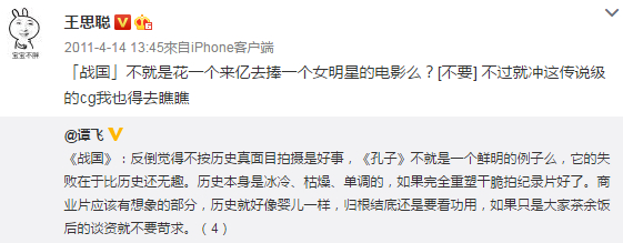 而且这次王思聪不是有意要点评,而是回应冯导《潘金莲致王健林先生的一封信》是,顺带提到了作品——