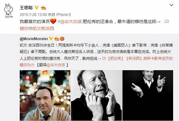 这次思聪很直接——凯文·史派西,排名NO.1。