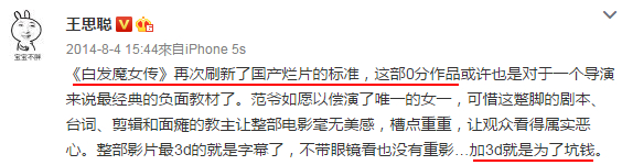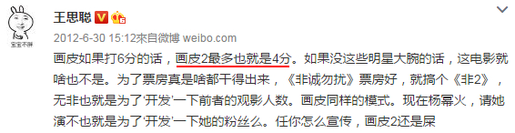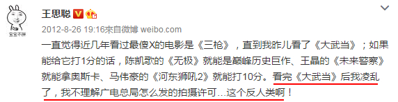 影评人王思聪存在的意义,就在于不留情面的棒喝。