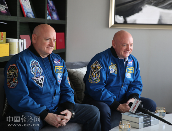 美国双胞胎宇航员兄弟马克·凯利(Mark Kelly)(右)、斯科特·凯利(Scott Kelly)(左)接受中国经济网记者专访