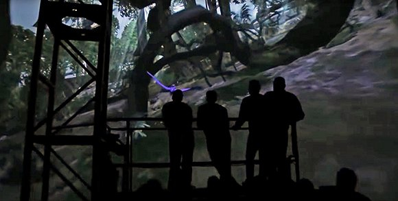 通过在屏幕上播放飞翔的影片,乘客可以身临其境地感受到坐在斑溪兽背上,飞翔在群山之间是什么感受,类似于迪士尼“未来世界”乐园中的“Soarin”。据《综艺》杂志介绍,这座影院中的座位会随着根本影片中的景象一起动。