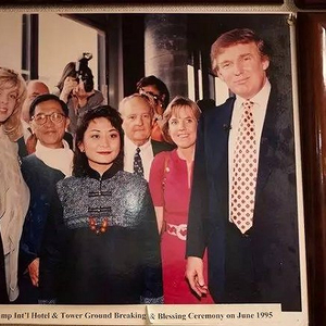 1995年6月,在新建成的特朗普国际酒店大厦庆典上,年近50岁的地产商人的特朗普面带微笑,与一众人员合影留念。站在人群正中央的,是两张东方面孔,本研和她的父亲天山,两个人都是纽约著名的风水师。