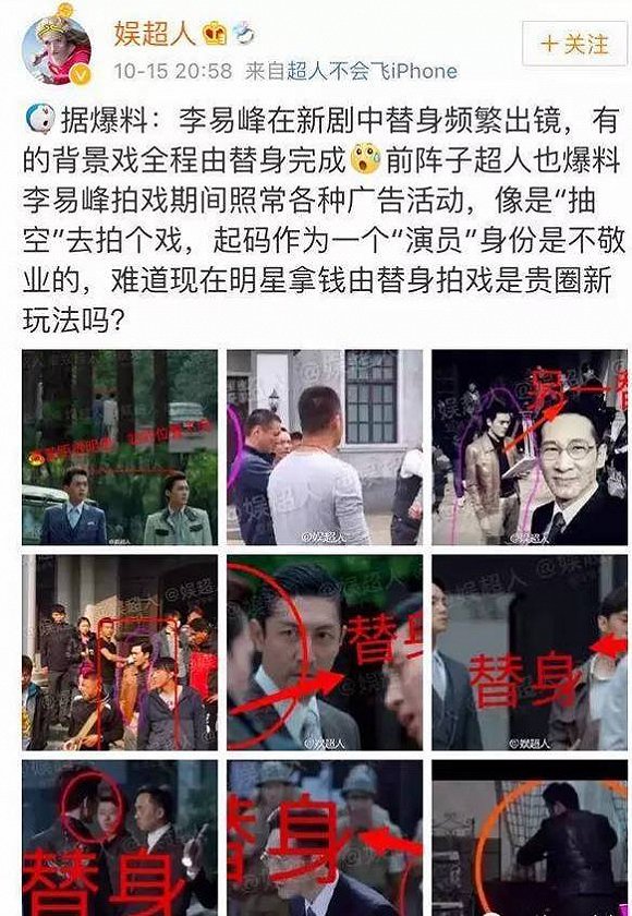 然而,李易峰滥用替身的风波过后,“数字小姐”“人皮倒模”等年轻演员不敬业的消息再次踢爆娱乐圈。