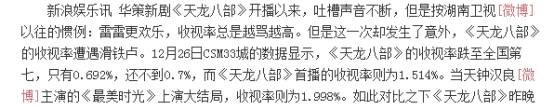 而新版《天龙八部》不仅从人设造型开始就饱受诟病,比如萧峰造型太过邋遢,段誉不够儒雅只会卖萌等,剧中一个轻功飞过两座山的特技也让人瞠目结舌。最后收视惨败,尽管钟汉良作品变多,但收视和评分并没有一一保证。