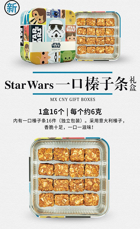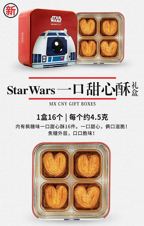 继2016年中秋之后,糕点品牌香港美心再次与《星球大战》合作,推出两款主题零食礼盒。