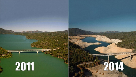2011年和2014年的奥罗维尔湖,可以预见,在不久的将来,这里会变成一片旱土。