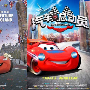 迪士尼知名电影《赛车总动员》(左)与国产动画片《汽车人总动员》(右)海报