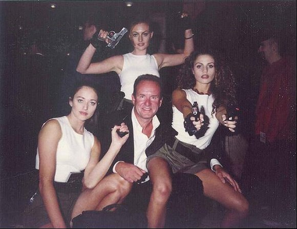 1996年ECTS会场上,最早的三名劳拉模特。他们找来了模特来扮演劳拉,在展会上四处招摇。如果你当时在ECTS会场,会发现三个“劳拉”,其中不乏凯蒂·普莱斯(Katie Price)这样的明星。就在游戏媒体惊叹于《古墓丽影》堪称梦幻的游戏画面时,Eidos却另辟蹊径,把营销重点放在这个波霸女主上,甚至在游戏封面底部打上“劳拉出演”的字样——尽管这还是《古墓丽影》的第一款游戏,他们还不惜在公交车大打广告,用劳拉模特们的性感身姿吸引注意。他们觉得,性感会是这游戏的一大卖点。