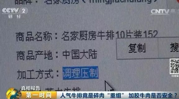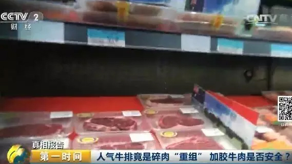 △【视频】记者调查:人气牛排竟是碎肉“重组” 加胶牛肉是否安全?