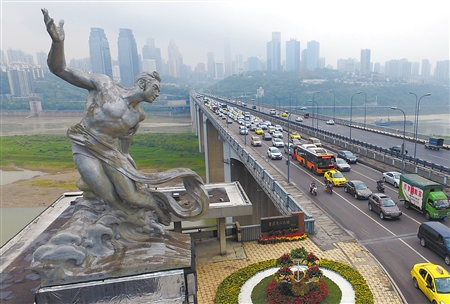 重庆长江大桥桥头雕塑 本组图片除署名外由记者 李化 摄