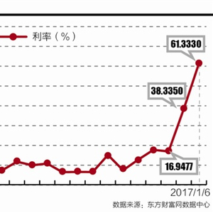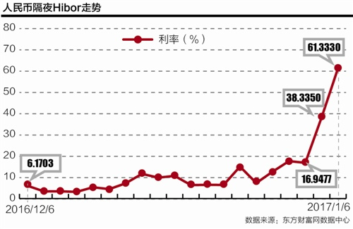 同时,进入2017年以来,7天人民币Hibor也加速上涨,从1月3日的14.54%暴涨至1月6日的24.73%;另外,14天利率升至19.63%;3个月期利率升至10.66%,均创下历史新高。