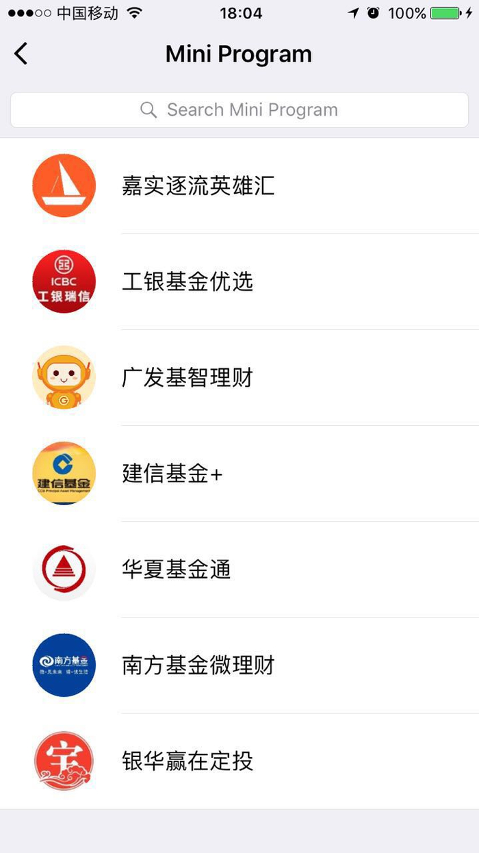 据记者不完全统计,华夏基金、银华基金、建信基金、南方基金、工银瑞信基金、嘉实基金、广发基金等成为了公募基金首批“试水”小程序的基金公司。
