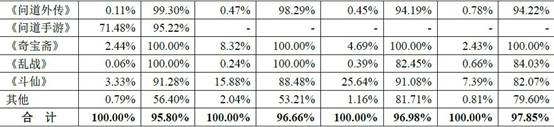 据该公司招股说明书提供的资料显示,吉比特收入来源主要为《问道》《问道外传》《斗仙》三款网络游戏。2012年到2015年1~9月,该三款游戏收入分别占当期营业收入比重的94.79%、96.02%、93.60%和89.45%。其中,仅《问道》的收入占同期营业收入的比重分别为94.00%、 87.86%、 67.55%和 72.12%。