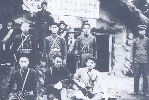 1939年秋,东北抗联第一路军政委魏拯民(左二)与第一路军指战员在一起。