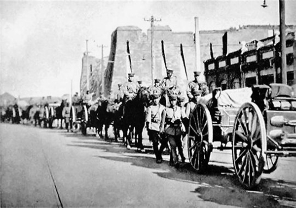 1931年9月18日夜,盘踞在中国东北的日本关东军按照精心策划的阴谋,由铁道“守备队”炸毁沈阳柳条湖附近日本修筑的南满铁路路轨,并栽赃嫁祸于中国军队。日军就以此为借口,开始“名正言顺”“光明正大”地炮轰沈阳北大营,制造了震惊中外的“九一八事变”。图为九月十九日拂晓,日军占领奉天(沈阳)。
