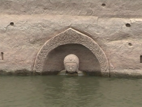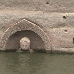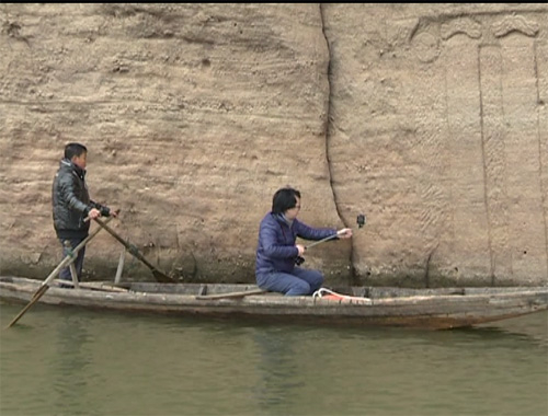 近日国家文物局水下文化遗产保护中心专业考古队来到江西抚州南城县,对洪门水库摩崖造像周围水域进行水下考古探测。此前,因水库水位下降,有村民发现湖内露出一尊佛头和一座圣旨牌坊。专家根据露出水面的佛头造型,初步判断为明代佛像;崖壁凿刻痕迹中有一些方形的孔,说明此处可能曾建有庙宇。(央视记者 王舒畅)