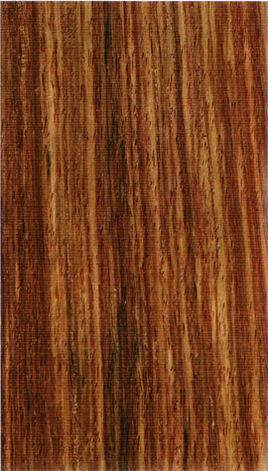 装饰、镶嵌、高级装饰木地板。纹理交错,梢部较直,结构较细而均匀。新伐材有一股香气,较久渐淡或消失。木屑放在嘴里嚼一嚼吐出来,口水变成褐色,口腔有点光滑感。光泽强。量重。含水率15%,放在水里,没水,但不沉底。