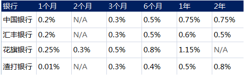 如上图所示,外币理财产品的预期收益率通常都很低,美元理财产品一年期的预期年化收益也就在2%左右。