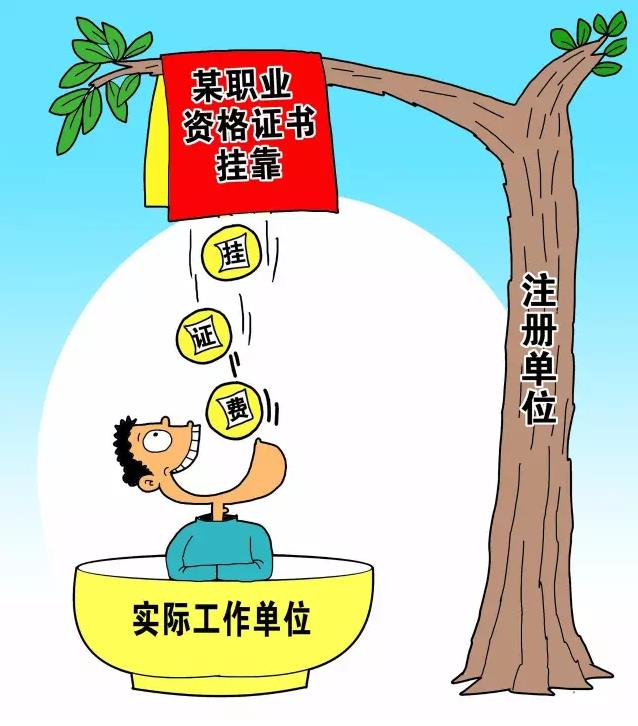 由于我国的执业资格实行单位注册,相关单位要想取得资质,必须有相当数量的注册人员。这样就导致有些考取了执业资格证的人员,不从事相应的工作,只是把自己的执业资格证给需要的单位注册,单位给与一定的报酬,但本人并不在这个单位工作,俗称“挂证”。