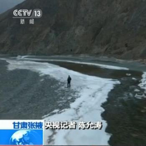 央视记者 陈允涛:我现在的位置是在祁连山国家级自然保护区内,旁边这条河流叫黑河,顺着这条河,祁连山的雪水滋润了整个河西走廊。然而现在黑河已经退化成只有2、3米宽的一个径流,那么黑河水真的只有这些流量吗?顺着镜头的方向能看到,大部分水量被一个水电站截流了。