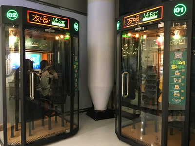 KTV又出新玩法。日前一款名叫友唱自助娱乐吧“移动式KTV”近日杀入京城各大商场。这种类似电话亭的自主娱乐吧面积不大,8元/首歌的收费标准不低,已接连进驻北京银泰中心、西单君太百货、万柳华联等北京知名商场。相比传统形式的KTV,自助娱乐吧看似轻巧便捷、吸客能力较强,不过,进驻寸土寸金的商场之内运营成本高企,对于消费者而言,新鲜感过后,自助娱乐吧能否实现盈利仍是未知数。