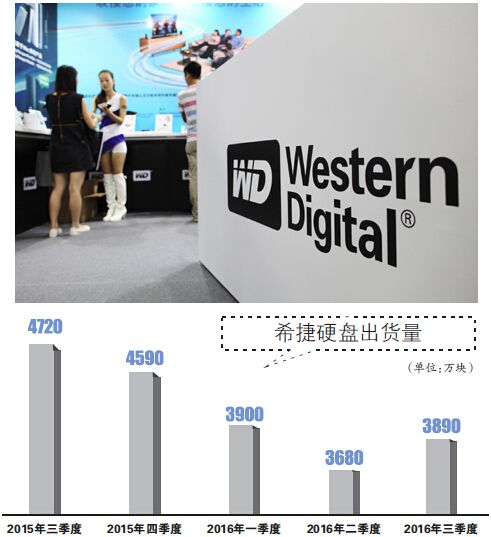 在硬盘出货量方面,截至2016年7月1日,希捷该季度出货量仅为3680万块,同比减少840万块,环比减少240万块,创季度出货量新低;西部数据该季度出货量仅为4010万块,跌入新的低谷,比前一季度4310万块少了300万块,同比更是锐减840万块,市场份额也跌到了40.1%的近年低点。