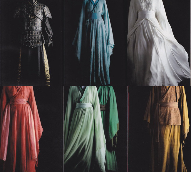 这种夸张热烈的色彩同样出现在张艺谋的《英雄》与《十面埋伏》中。“我在《英雄》里用雪纺材质做服装,有飘逸的感觉,而且只用了红、白、蓝三种色调。”和田惠美说,在为《十面埋伏》做设计时,她在中国传统的基础上为章子怡设计了一顶竹帽子,不规则手工编织的手法来自于京都古老的技艺。水袖围绕着章子怡的舞步,缠绕出一个丝绸锦缎的漩涡。