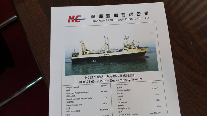 黄海造船有限公司,始建于1944年,1964年企业更名为“山东省黄海造船厂”,成为全国八大渔轮修造厂之一。1999年企业改制为有限责任公司, 2007年,经国家工商行政管理局批准,定名为“黄海造船有限公司”。
