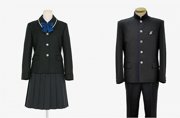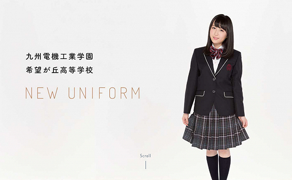 九州电机工业学园希望之丘高等学校:藏青色校服外套与白色滚边的对比设计