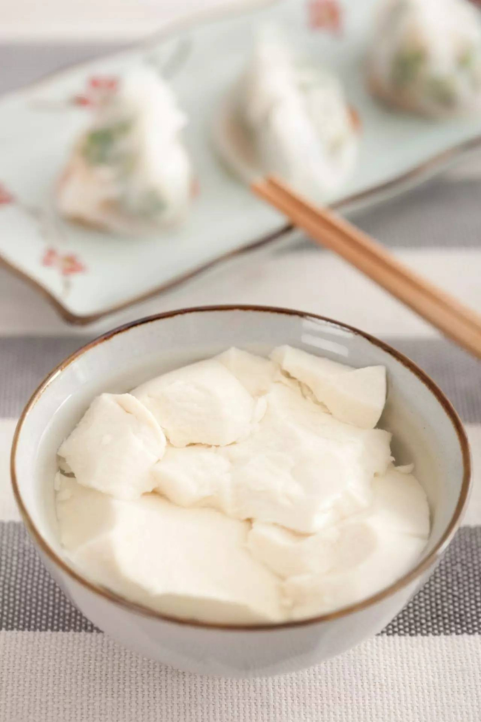 豆腐最简便的吃法是拌。买回来就能拌。或入开水锅略烫,去豆腥气。不可久烫,久烫则豆腐收缩发硬。