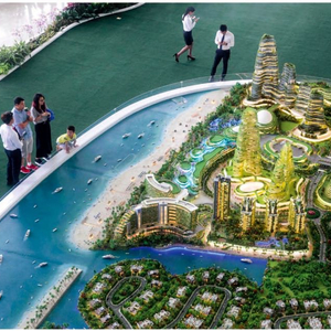 森林城市是广东省十大“一带一路”项目,目前亦是碧桂园颇受争议的一个海外项目。它在毗邻新加坡的马来西亚新山市,占地面积约20平方公里,计划整体投资1000亿美元,前后开发需20年。当同行都在避免大盘陷阱时,杨国强执着地在马来西亚继续造梦。