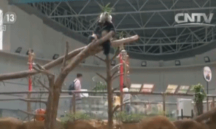 在四川卧龙,工作人员把熊猫幼儿园装扮一新,还买来鸡仔玩偶,陪伴熊猫宝宝共迎新春。宝宝们一会儿拿手碰,一会儿用牙咬,最后和鸡仔玩偶来了个四脚朝天,给大家拜年。