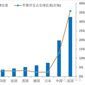 横向来看,中国军费支出占比在大国中排名靠后。按世界银行口径,在军事实力前十的国家中,除掉受一定限制的二战战败国,中国军费支出占比仅略高于英国。按中国财政部口径,中国2015年国防支出占GDP比重仅1.32%,远低于军事大国应达的最少2%,进一步反映了中国国防支出相对经济发展的滞后。