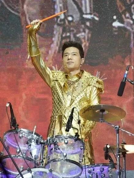 第一个出场的是身披金色铠甲战袍的李彦宏,在舞台中央击鼓而歌,一曲《男儿当自强》,再配上厂长的高颜值,瞬间热场。