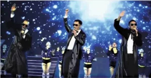 别看平时一脸冷酷,在霸道总裁马化腾带领下,TX boys(腾讯高管天团)可是表演了不少节目,墨镜风衣上阵,接连演唱了《刀剑如梦》、《失恋阵线联盟》、《饿狼传说》,最后跳了BigBang的《BANG BANG BANG》舞曲,还有骑马舞《Tencent style》,气氛再次被抬升,燃爆全场。