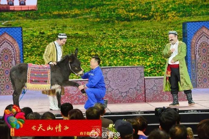 小品《天山情》是春晚历史上首次出现的少数民族小品。新疆小伙儿和姑娘们身穿民族盛装,还把新疆的民族乐器、特色瓜果以及“倔强”的小毛驴带到了舞台上。