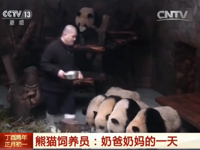 呵护每一只大熊猫的健康是成都大熊猫繁育研究基地每一位饲养员最大的愿望,下面我们来跟随镜头看一看熊猫奶爸奶妈的一天。